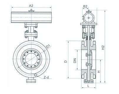 三,D643H氣動硬密封 蝶閥 - 主要連接和尺寸: